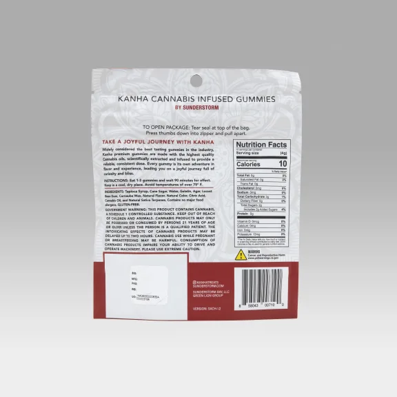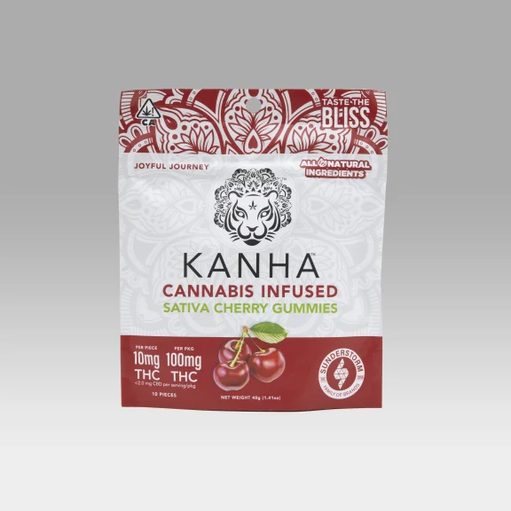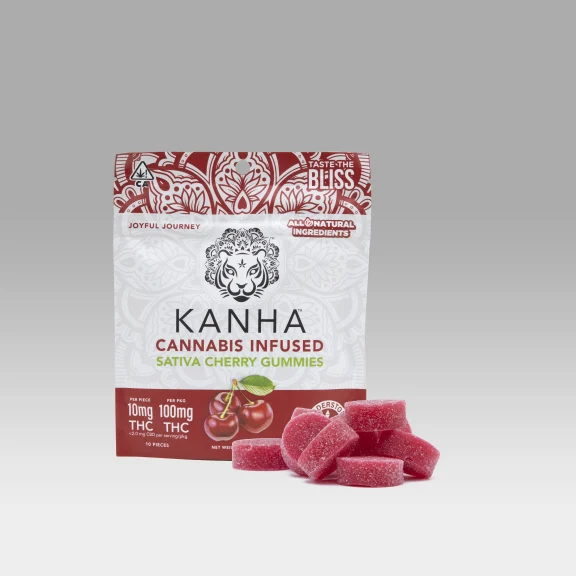 Kanha gummies are made with all-natural ingredients, coloring, and flavoring. Each gummy is infused with the highest quality cannabis oils to provide the most consistent, safe experience on the market. Our Cherry gummies are juicy sweet and made with sativa terpenes, which induce a stimulating and uplifting state of mind.